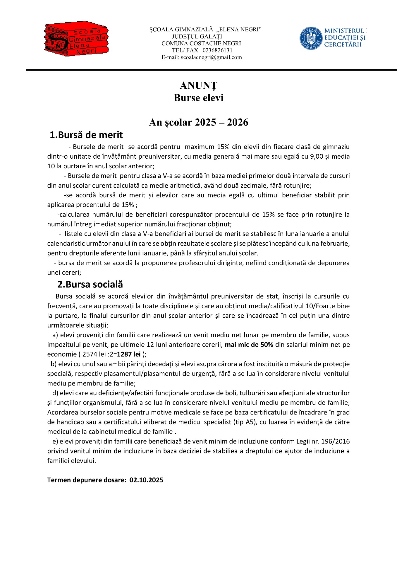 In anul școlar 2022-2023, în planul de școlarizare a fost alocata 1 CLASA PREGATITOARE, fără criterii de departajare generale și specifice.